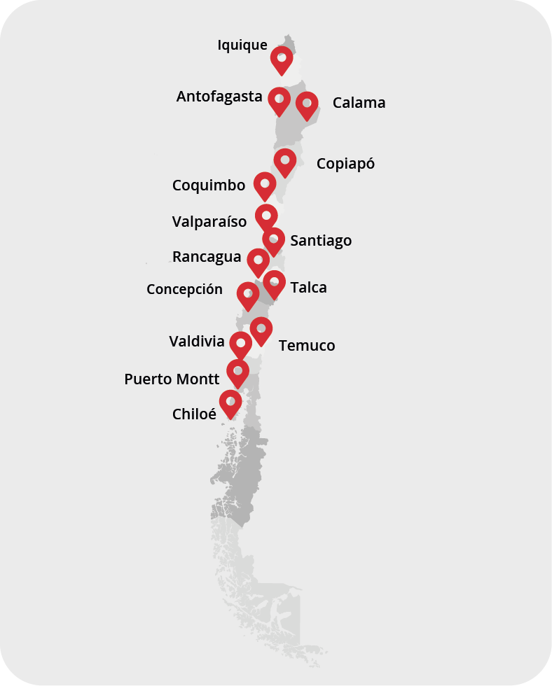 Nuestro equipo esta presente a lo largo de todo Chile