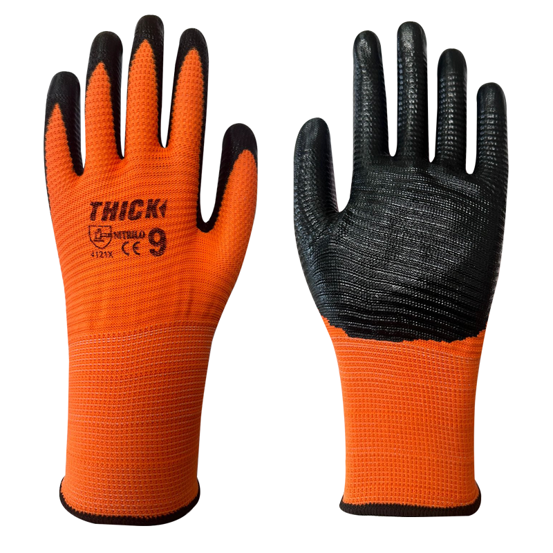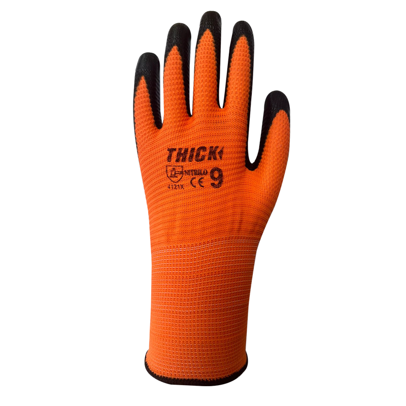 GUANTE NITRILO RUGOSO NARANJO CON ETIQUETA THICK