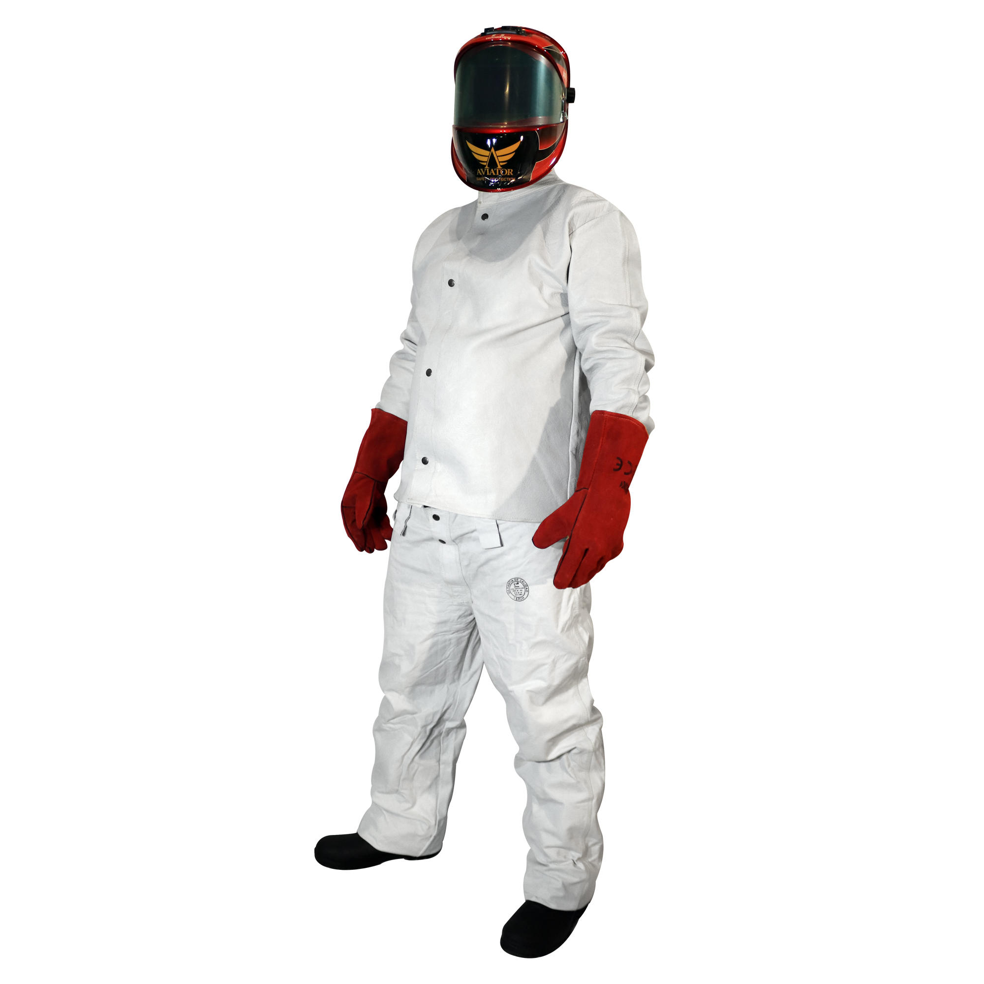 Pantalón de soldador fabricado en cuero de alta flexibilidad lo que asegura la movilidad suficiente para el trabajo a desempeñar. Cuello con cierre de velcro, se utiliza doble costura interior en la confección e hilo kevlar ignífugo. Utilizado en la industria de la Minería y la Construcción preferentemente.