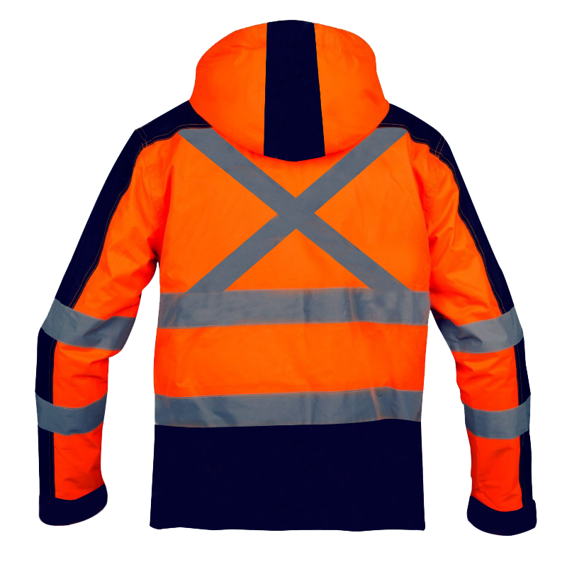- Capucha con cordón y tope, frente con cremallera y solapa contra tormentas, un bolsillo con cremallera en el pecho y dos bolsillos inferiores con cremallera, con cinta reflectante.