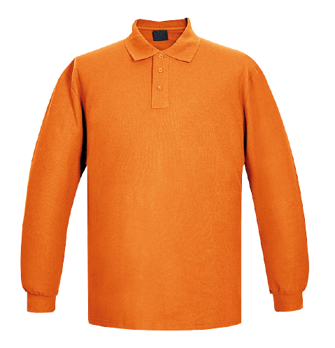 Prenda de vestir que se refiere a una camiseta de manga larga fabricada en tejido de piqué y de color naranjo. La prenta tiene mangas que subren los brazzos hasta la muñeca.